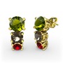 Peridot, dumanlı kuvars ve garnet 14 ayar altın küpe