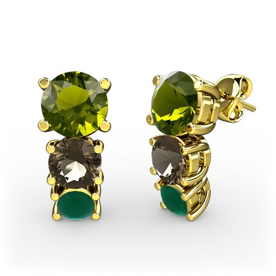 Peridot, dumanlı kuvars ve kök zümrüt 925 ayar altın kaplama gümüş küpe