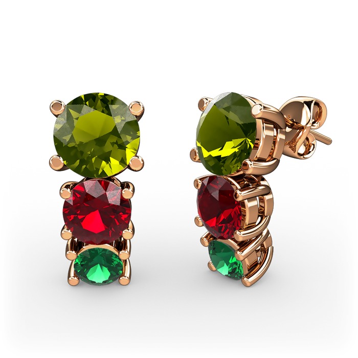 Peridot, garnet ve yeşil kuvars 18 ayar rose altın küpe