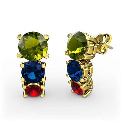 Peridot, lab safir ve garnet 8 ayar altın küpe