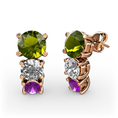 Peridot, pırlanta ve ametist 8 ayar rose altın küpe (0.48 karat)