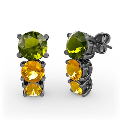Peridot ve sitrin 925 ayar siyah rodyum kaplama gümüş küpe