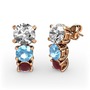 Pırlanta, akuamarin ve kök yakut 14 ayar rose altın küpe (1 karat)