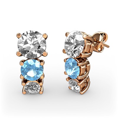 Pırlanta, akuamarin ve swarovski 8 ayar rose altın küpe (1 karat)