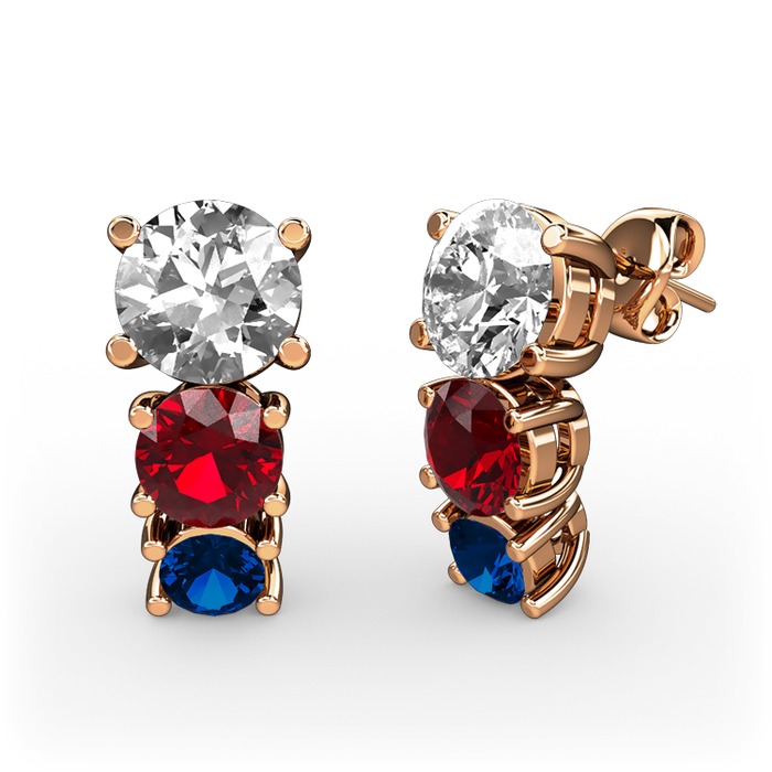 Pırlanta, garnet ve lab safir 14 ayar rose altın küpe (1 karat)