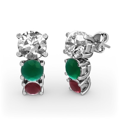 Pırlanta, kök zümrüt ve kök yakut 925 ayar gümüş küpe (1 karat)
