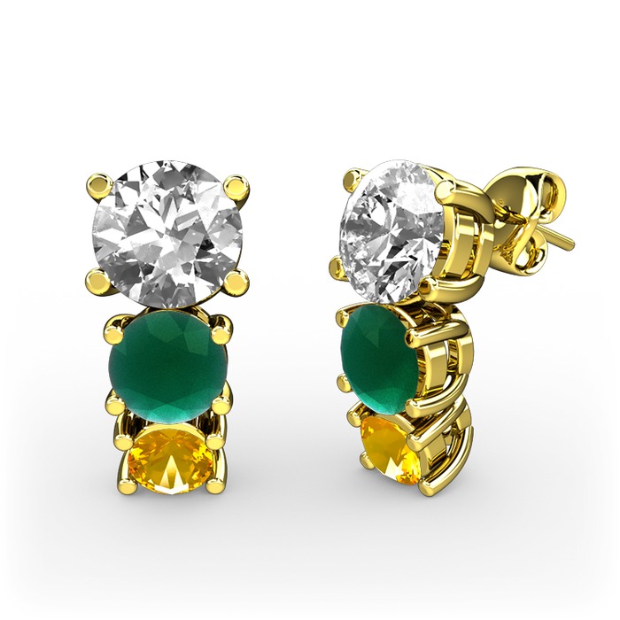 Pırlanta, kök zümrüt ve sitrin 8 ayar altın küpe (1 karat)