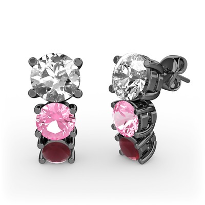 Pırlanta, pembe kuvars ve kök yakut 925 ayar siyah rodyum kaplama gümüş küpe (1 karat)