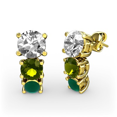 Pırlanta, peridot ve kök zümrüt 18 ayar altın küpe (1 karat)