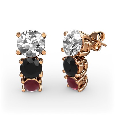 Pırlanta, siyah zirkon ve kök yakut 8 ayar rose altın küpe (1 karat)