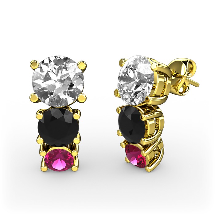 Pırlanta, siyah zirkon ve rodolit garnet 8 ayar altın küpe (1 karat)