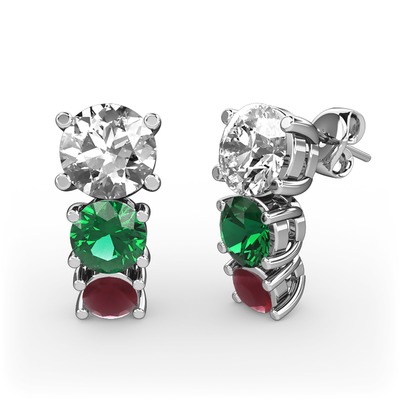 Pırlanta, yeşil kuvars ve kök yakut 14 ayar beyaz altın küpe (1 karat)