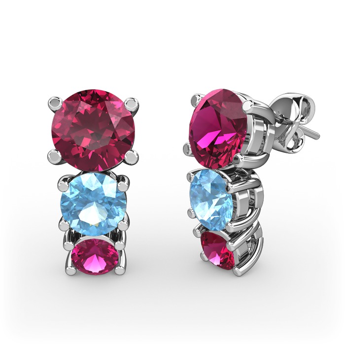 Rodolit garnet ve akuamarin 14 ayar beyaz altın küpe
