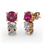 Rodolit garnet ve beyaz zirkon 14 ayar rose altın küpe
