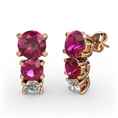 Rodolit garnet ve beyaz zirkon 8 ayar rose altın küpe