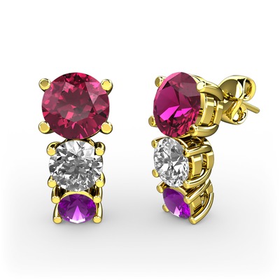 Rodolit garnet, beyaz zirkon ve ametist 8 ayar altın küpe