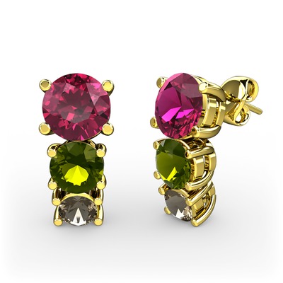 Rodolit garnet, peridot ve dumanlı kuvars 8 ayar altın küpe