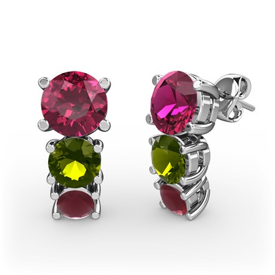 Rodolit garnet, peridot ve kök yakut 925 ayar gümüş küpe