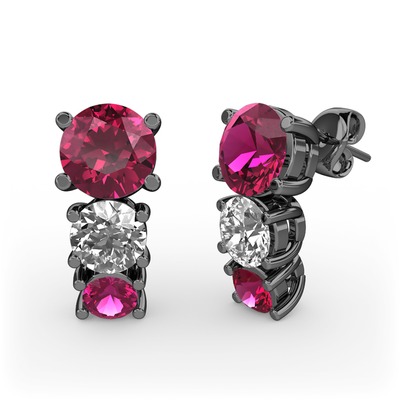 Rodolit garnet ve pırlanta 925 ayar siyah rodyum kaplama gümüş küpe (0.48 karat)