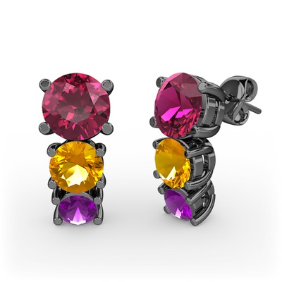 Rodolit garnet, sitrin ve ametist 925 ayar siyah rodyum kaplama gümüş küpe