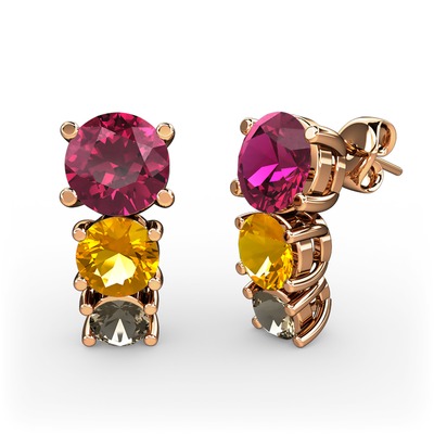Rodolit garnet, sitrin ve dumanlı kuvars 8 ayar rose altın küpe