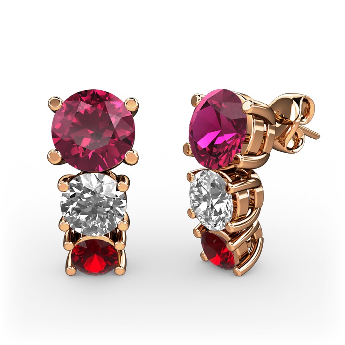 Rodolit garnet, swarovski ve garnet 18 ayar rose altın küpe