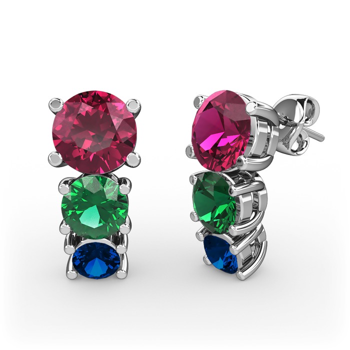 Rodolit garnet, yeşil kuvars ve lab safir 14 ayar beyaz altın küpe