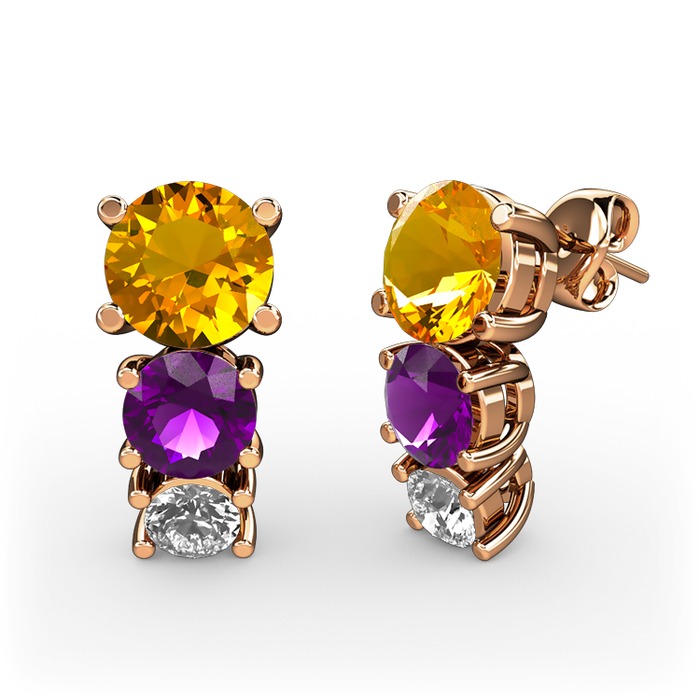 Sitrin, ametist ve pırlanta 18 ayar rose altın küpe (0.22 karat)