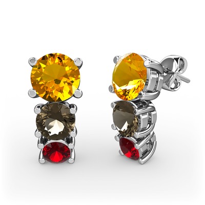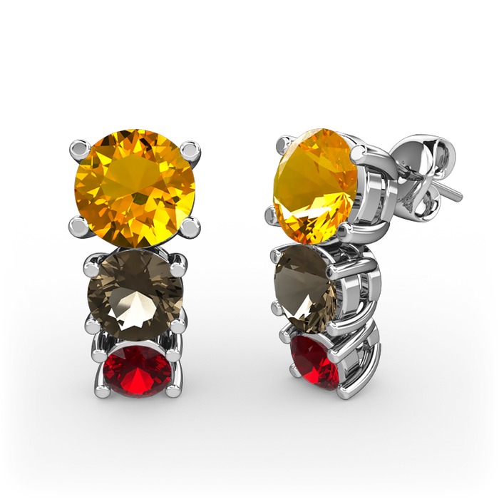 Sitrin, dumanlı kuvars ve garnet 18 ayar beyaz altın küpe