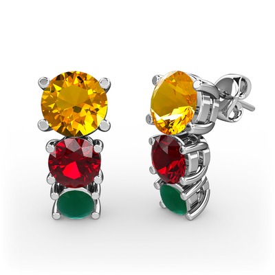 Sitrin, garnet ve kök zümrüt 8 ayar beyaz altın küpe