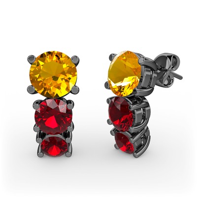 Sitrin ve garnet 925 ayar siyah rodyum kaplama gümüş küpe