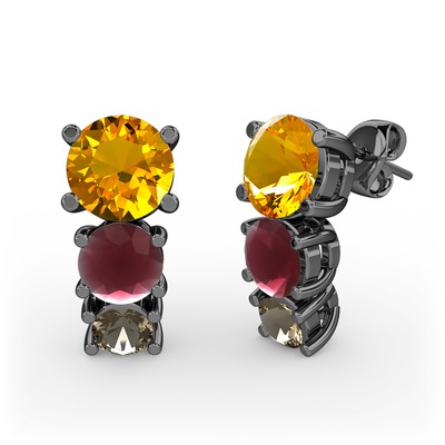 Sitrin, kök yakut ve dumanlı kuvars 925 ayar siyah rodyum kaplama gümüş küpe