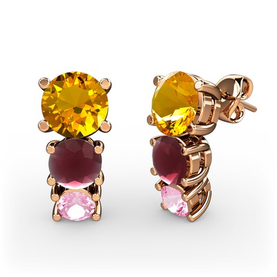 Sitrin, kök yakut ve pembe kuvars 8 ayar rose altın küpe