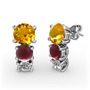 Sitrin, kök yakut ve swarovski 18 ayar beyaz altın küpe