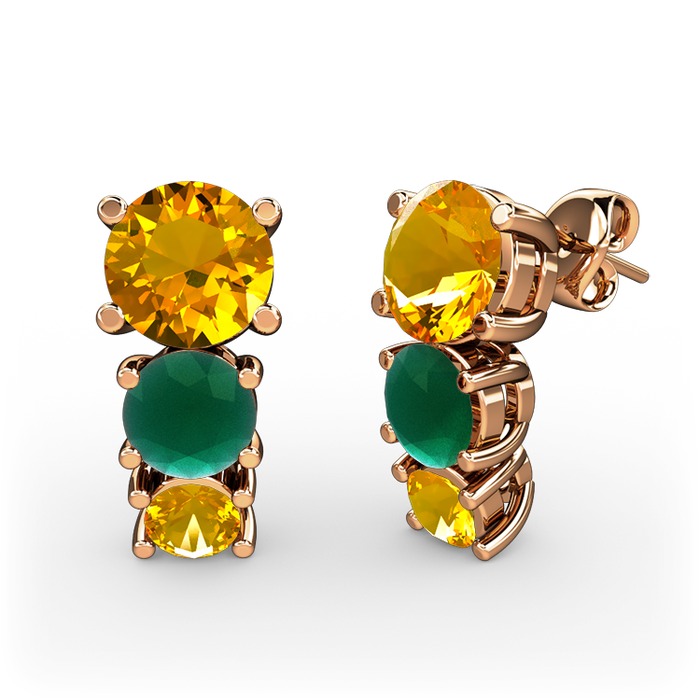 Sitrin ve kök zümrüt 18 ayar rose altın küpe
