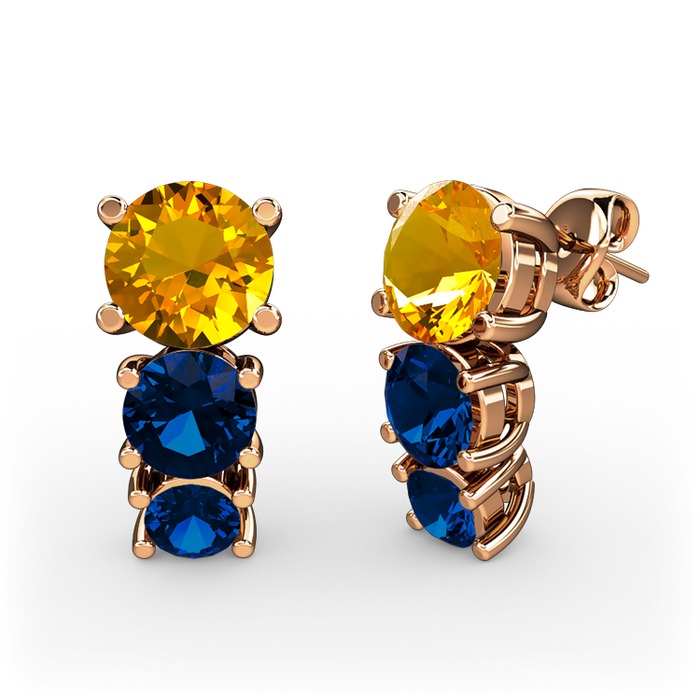 Sitrin ve lab safir 18 ayar rose altın küpe