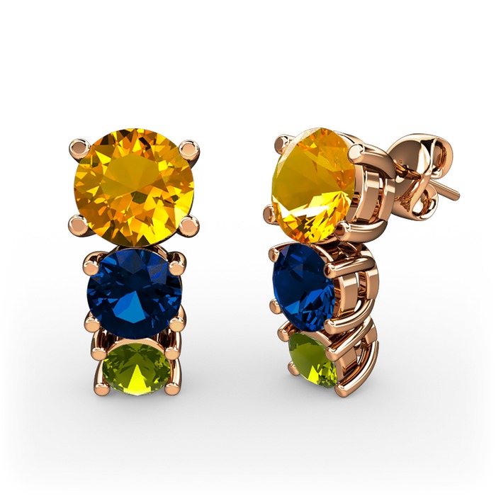 Sitrin, lab safir ve peridot 8 ayar rose altın küpe