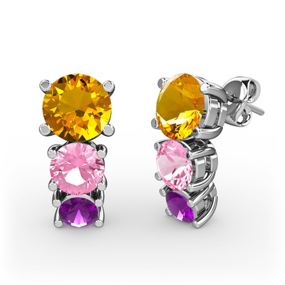 Sitrin, pembe kuvars ve ametist 14 ayar beyaz altın küpe