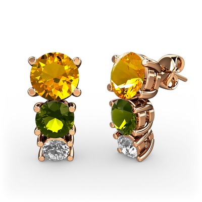 Sitrin, peridot ve beyaz zirkon 14 ayar rose altın küpe