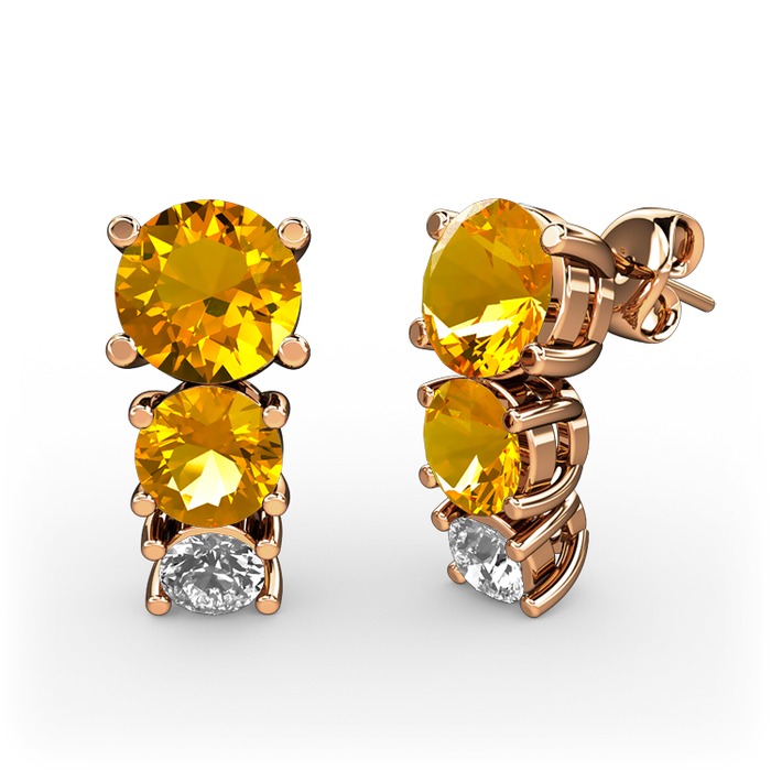 Sitrin ve pırlanta 8 ayar rose altın küpe (0.22 karat)