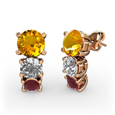 Sitrin, pırlanta ve kök yakut 14 ayar rose altın küpe (0.48 karat)