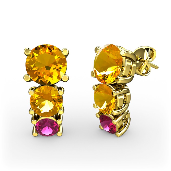 Sitrin ve rodolit garnet 18 ayar altın küpe