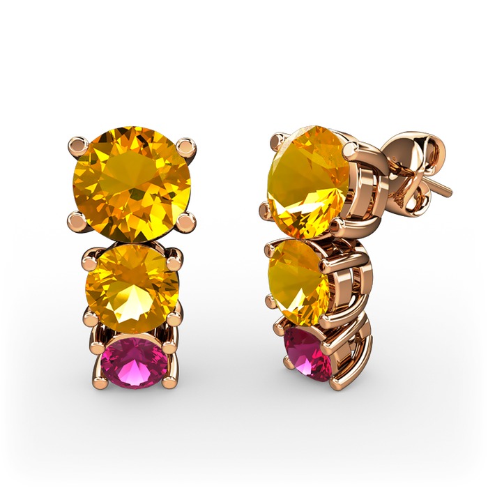 Sitrin ve rodolit garnet 8 ayar rose altın küpe