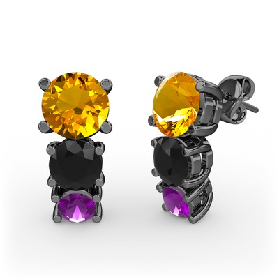Sitrin, siyah zirkon ve ametist 925 ayar siyah rodyum kaplama gümüş küpe