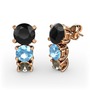 Siyah zirkon, akuamarin ve dumanlı kuvars 18 ayar rose altın küpe