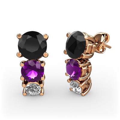 Siyah zirkon, ametist ve pırlanta 18 ayar rose altın küpe (0.22 karat)