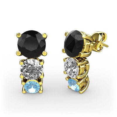 Siyah zirkon, beyaz zirkon ve akuamarin 14 ayar altın küpe