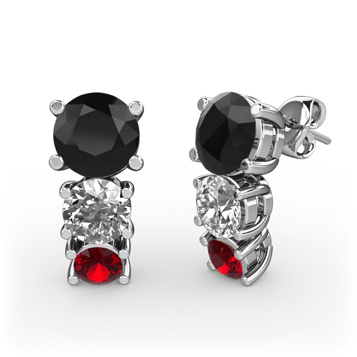 Siyah zirkon, beyaz zirkon ve garnet 925 ayar gümüş küpe
