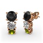 Siyah zirkon, beyaz zirkon ve peridot 18 ayar rose altın küpe
