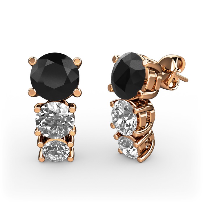 Siyah zirkon, beyaz zirkon ve pırlanta 14 ayar rose altın küpe (0.22 karat)
